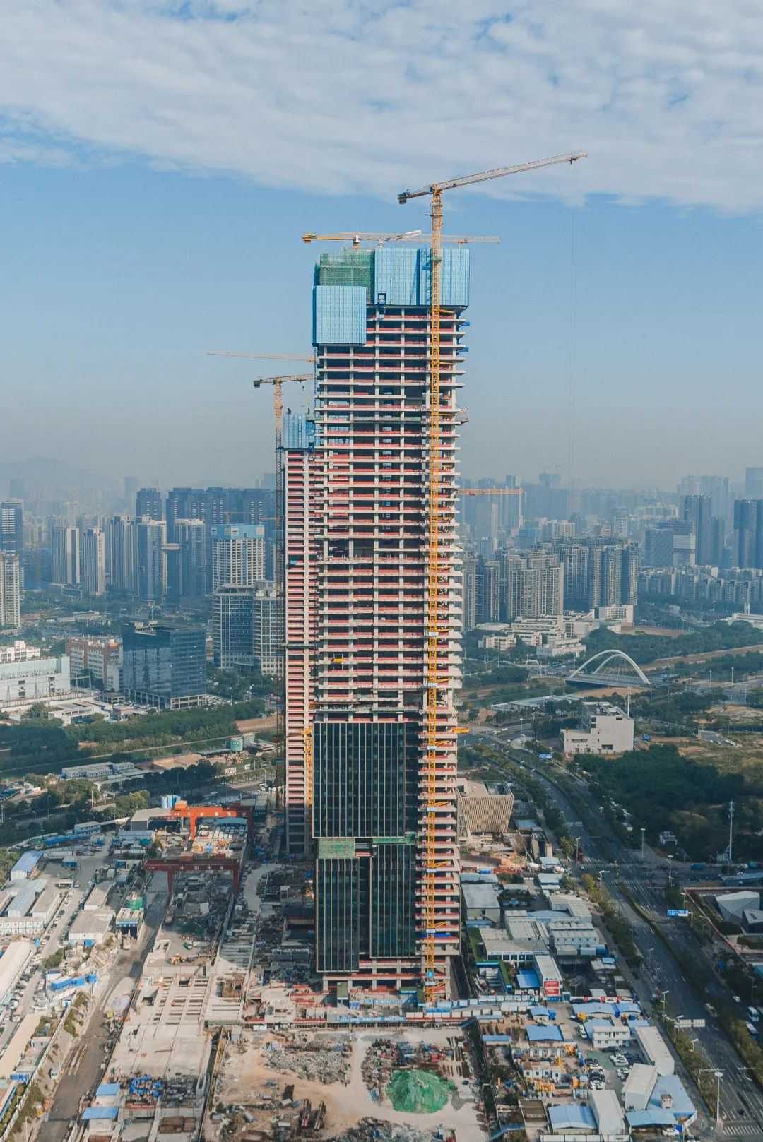 该项目位于福田区香蜜湖街道,总建筑面积21.6万平方米。项目是大型装配式钢结构建筑,利用自主研发的C8BIM平台,实现钢构件全过程追踪管理;运用智慧建造平台和BIM+AR技术,打造施工全周期价值链,提高建造精度,确保施工质量。