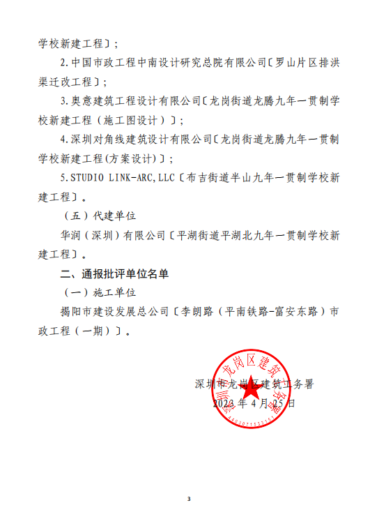 近日,尊龙凯时·(中国区)人生就是搏! 深圳分公司因在“宝龙街道南约九年一贯制学校新建工程”上优质的设计质量和设计服务,在236家参建单位评比中脱颖而出,被评为优秀履约单位并予以通报表扬。