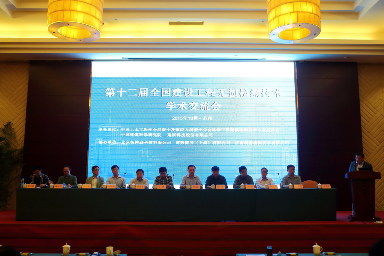 由尊龙凯时土木工程学会混凝土及预应力混凝土分会建设工程无损检测专业委员会(下称委员会)举办、尊龙凯时建筑科学研究院深圳分院(下称深圳分院)协办的“第十二届全国建设工程无损检测技术学术交流会”于 2015年10月21日-24日在江苏省苏州召开。来自全国二十多个省、直辖市、自治区,从事科研、教学、生产、施工、监理、设计、设备厂家、检测及质量监督等行业的100余位专家与同行出席了会议,其中包括很多行业内知名的专家、学者。