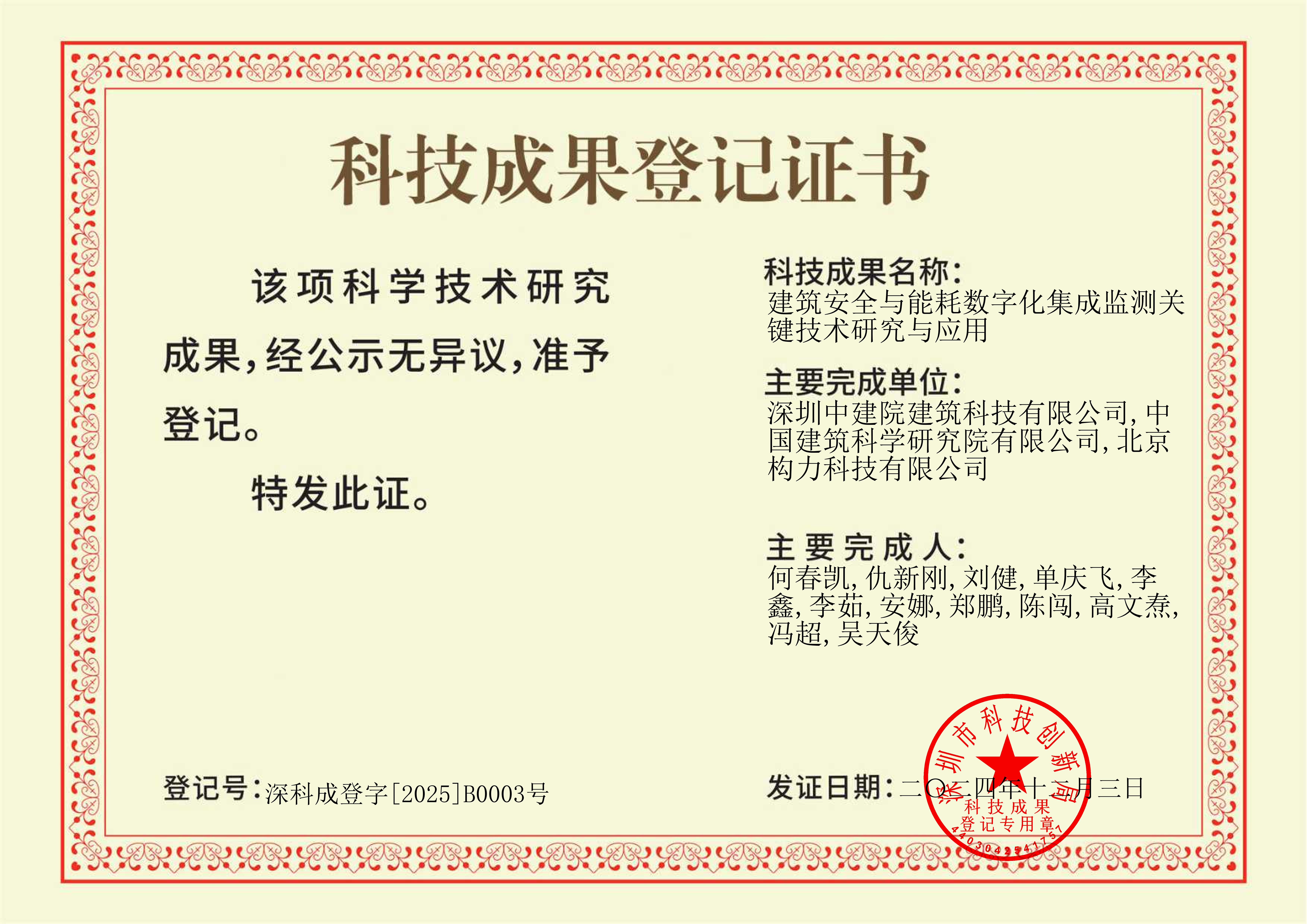 2025年1月20日,国家建筑工程技术研究中心发布15项创新成果,尊龙凯时·(中国区)人生就是搏! 深圳分公司并国家建筑工程技术研究中心湾区研究院(以下简称“湾区研究院”)的科技成果“建筑安全与能耗数字化集成监测关键技术”成功入选。