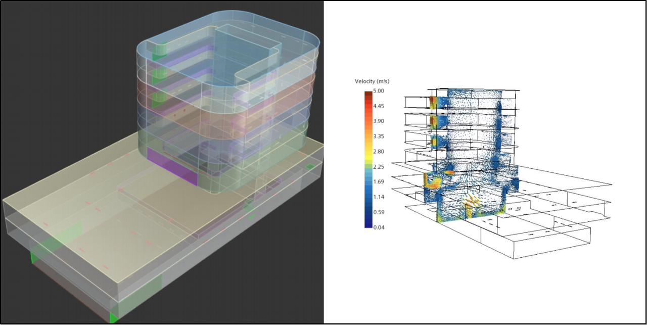 针对超高层建筑特有的气流组织问题,公司绿色建筑与节能研究团队重点开展高大空间环境优化研究。通过计算机模拟分析,对大厦大堂、中庭等核心区域进行气流组织优化设计,在确保室内环境健康舒适的同时,有效提升能源利用效率,为项目空气品质与节能运行提供关键技术保障。