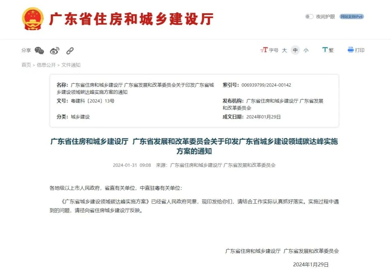 广东省城乡建设领域碳达峰实施方案